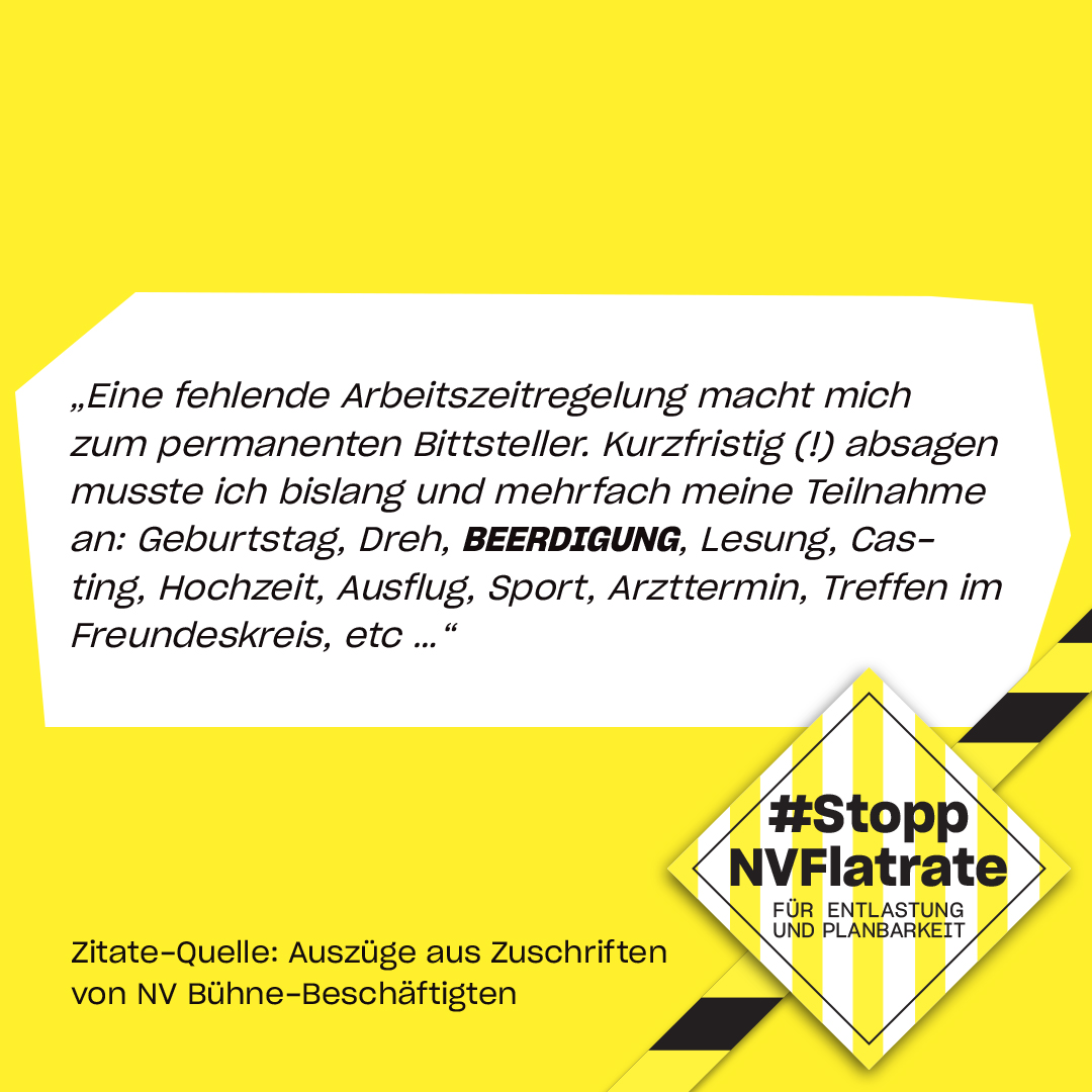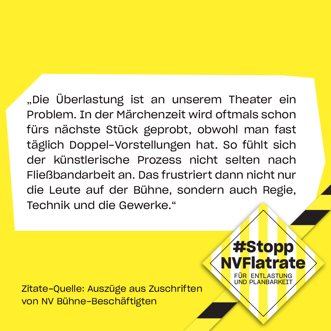 Die Aufrechterhaltung des Status Quo und gar Verschlechterungen der Arbeitsbedingungen kann nicht Grundlage von Verhandlungen sein. Überlastung und fehlende Planbarkeit plagen die Theaterschaffenden seit jahrzehnten.