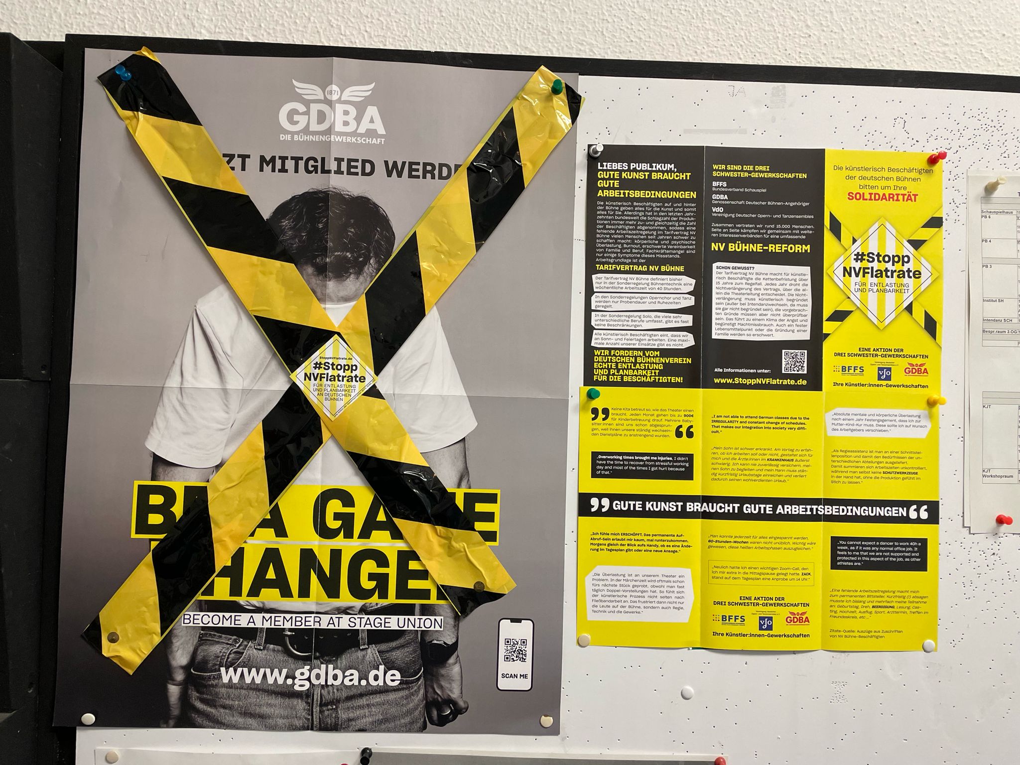 Wir sind die drei Schwestergewerkschaften BFFS (Bundesverband Schauspiel), GDBA (Genossenschaft Deutscher Bühnen Angehöriger) und VdO (Vereinigung deutscher Opern- und Tanzensembles). Wir verhandeln gemeinsam mit der Arbeitgeberseite, dem Deutschen Bühnenverein, den Tarifvertrag NV Bühne. Er ist die Arbeitsgrundlage von rund 20.000 Beschäftigten. Zusammen vertreten wir rund 15.000 Beschäftigte auf und hinter den Bühnen. Mit vielen weiteren Interessenverbänden kämpfen wir Seite an Seite für eine umfassende NV Bühne Reform. Denn so wie es ist, darf es nicht bleiben.